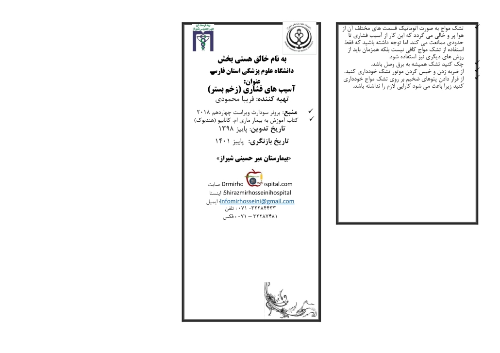 پمفلت آسیب های فشاری2025-11-29/در پمفلت داخلی و جراحی, مقالات آموزشي /توسط Mirhosseini Admin https://mirhosseinihospital.com/wp-content/uploads/2021/12/mirhosseini-logo-300x100.png 0 0 Mirhosseini Admin https://mirhosseinihospital.com/wp-content/uploads/2021/12/mirhosseini-logo-300x100.png Mirhosseini Admin2025-11-29 09:27:342025-11-29 10:01:05پمفلت آسیب های فشاری