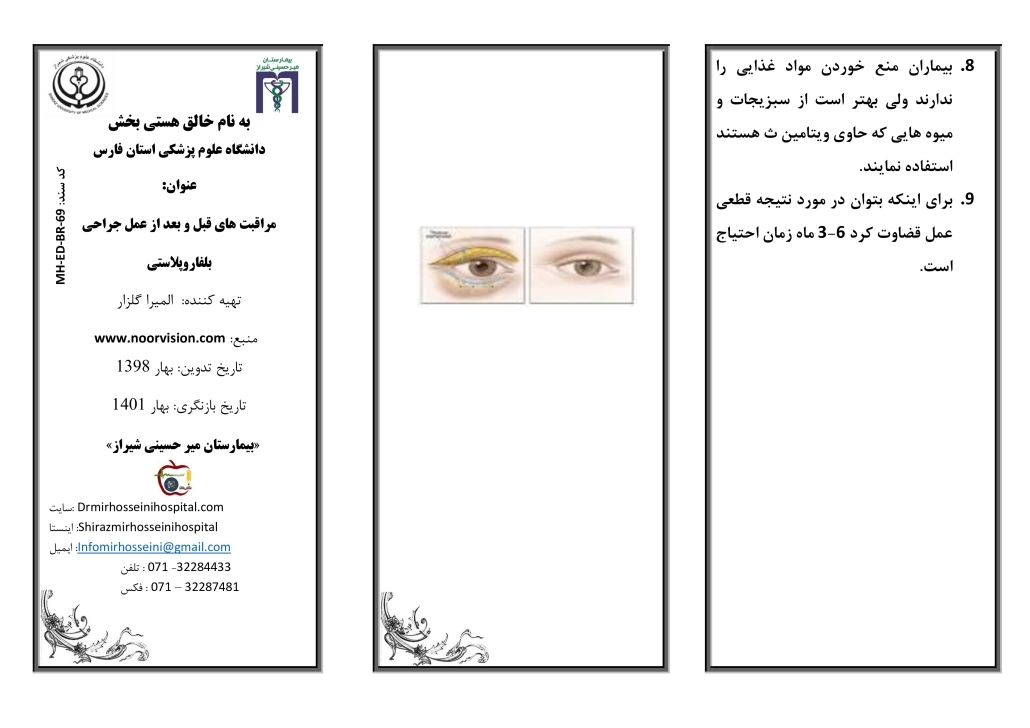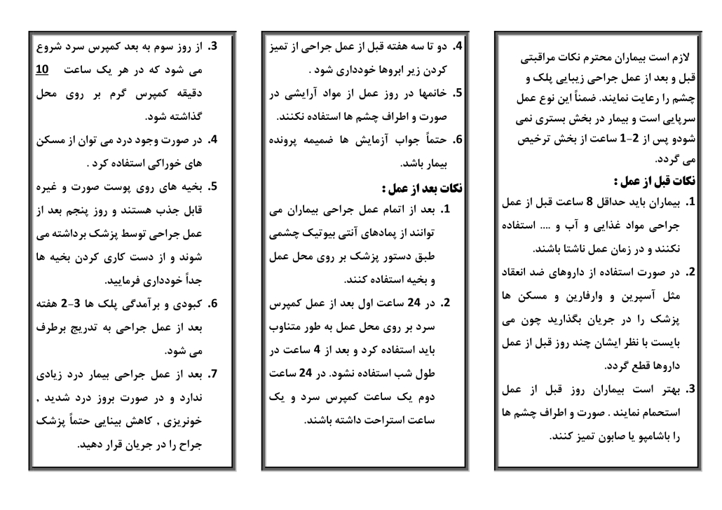 پمفلت مراقبت بعد از عمل بلفاروپلاستی